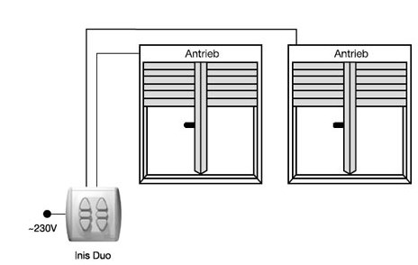 - Inis Duo ist ein klassischer Rollladenschalter, mit dem 2 Antriebe getrennt gesteuert werden können