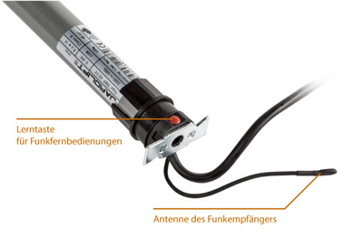 Das Verbinden eines Funkhandsenders mit dem TDEF Rollladenmotor ist mit der neuen Lerntaste am Motorkopf ein Kinderspiel. Gerade bei außenliegenden oder sehr engen Rollladenkästen ist das Einlernen der Endpunkte per Funk-Fernbedienung sehr vorteilhaft.