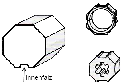 Adapterset für Rollladenwelle 40 x 0,6 - 0,8 Achtkantwelle mit Außenfalz